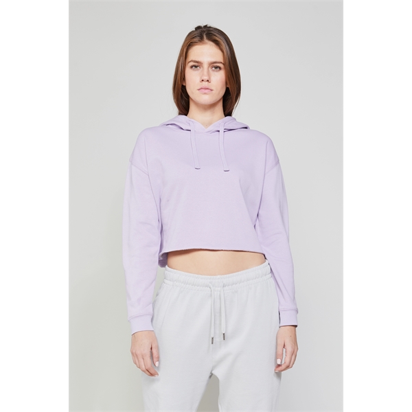 Relaxed for a super-comfy feel, the Crop Hoodie comes in our super soft 3-end fleece and features an on-trend silhouette. The 3-end fleece has an ultra tight-knit construction giving it better printability, soft hand-feel, and under 5% shrinkage. Raw hem, dyed-to-match flat drawcord, dropped shoulders. Double-needle topstitch on all seams. Tear away tags. FIT: Regular fit. Take your usual size. Size up if a looser fit is desired