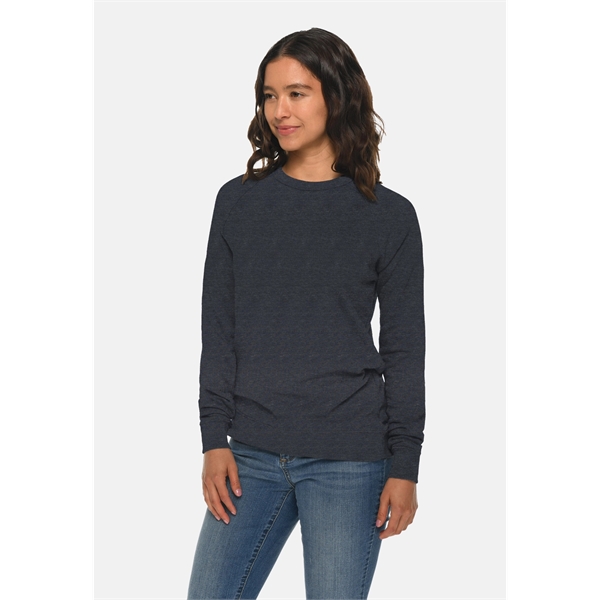Comfort and mobility, this 3-end French terry is lightweight making it perfect solo or as your go-to layering piece. French terry is the finest variation of terry cloth, and is knit from two separate yarns - one that stays taut, perfect for DTG printing, and another that creates loose loops on the back of the fabric, making it super soft against your skin. Features: Double-needle topstitch on all seams. Half-moon patch on the back neck for easy relabeling. Ribbed cuffs. Twill neck tape.